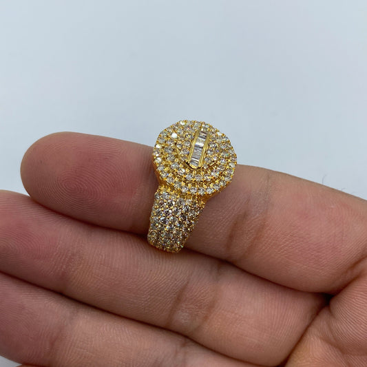 14K Circle Diamond Baguette Ring