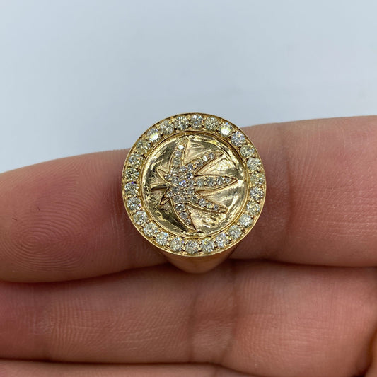 10K Marijuana Leaf Circle Crest Diamond Ring