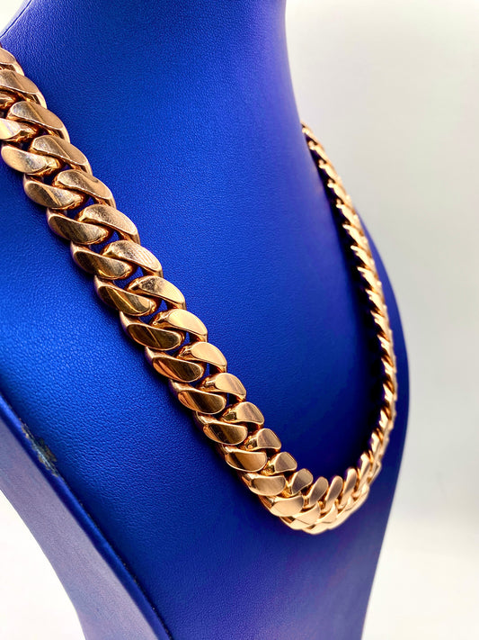 14k Solid Rose Gold Cuban Chain 12mm 28”