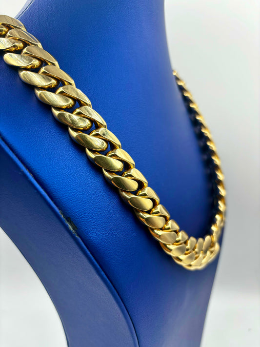 14K Solid Gold Cuban Chain 9.3mm 22in