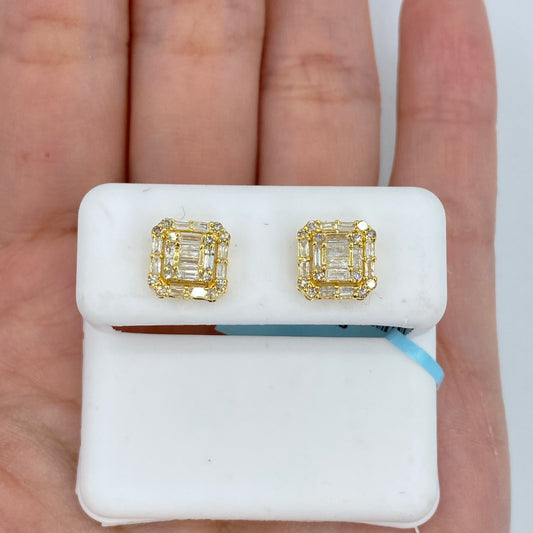 14K Square Box Diamond Baguette Earrings