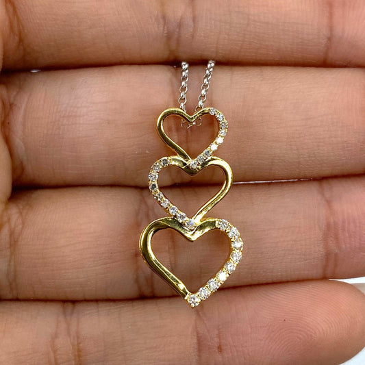 10K Heart Charm Stack Diamond Pendant