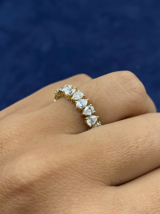 14k Gold Pair Shaped Ring Band alternating Lab Diamonds