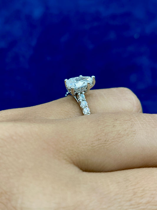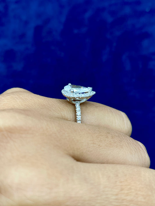 14k Pear Cut Halo Lab Diamond Engagement Ring