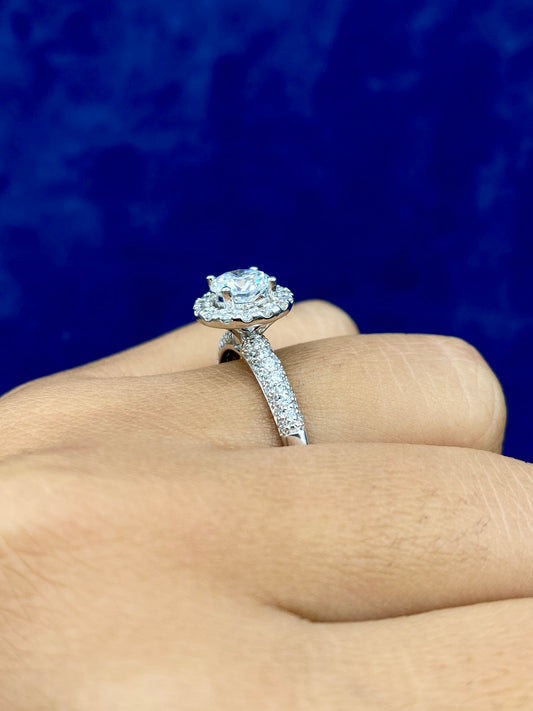 14k Circle Cut Halo Lab Diamond Engagement Ring