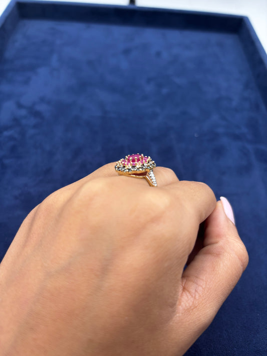10k Colorful Center Stone Flower Ring