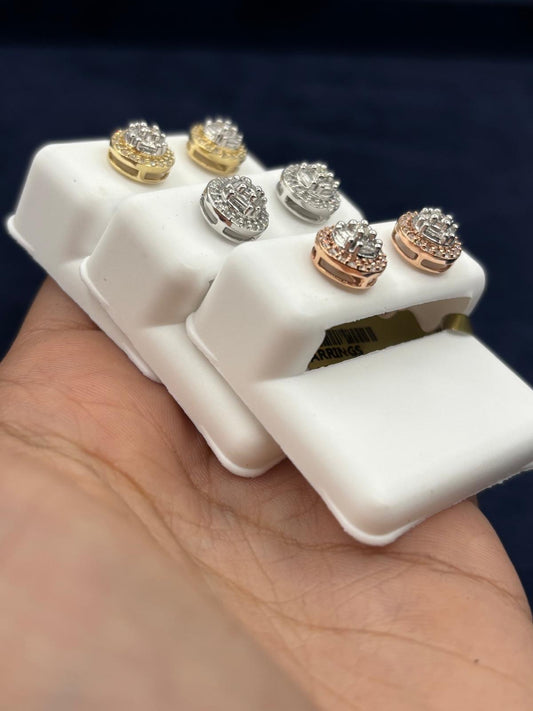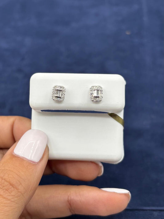 10k Baguette Halo Diamond Earrings
