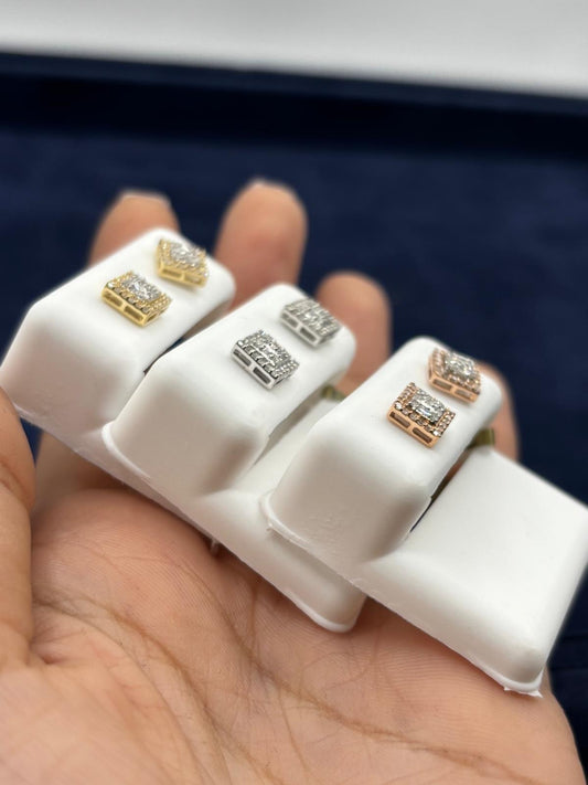 10k Square Layered Baguette Diamond Earrings
