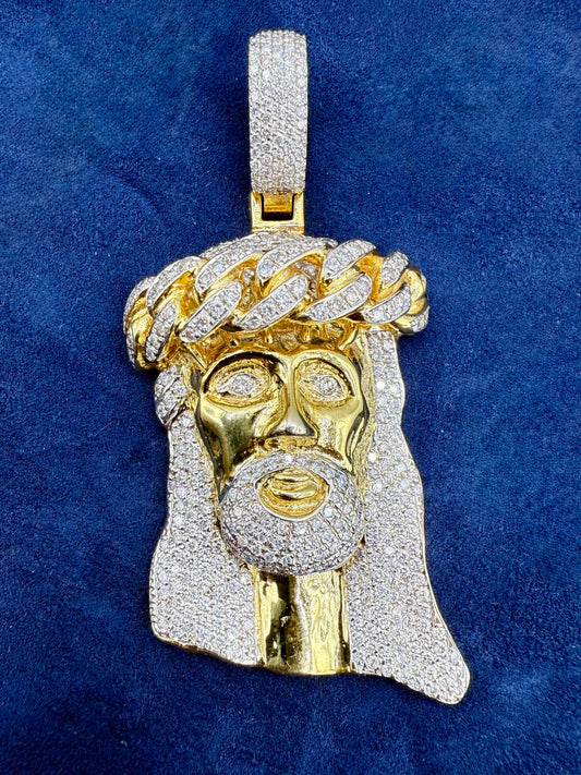 14k Custom Jumbo Cuban Link Jesus Head Pendant