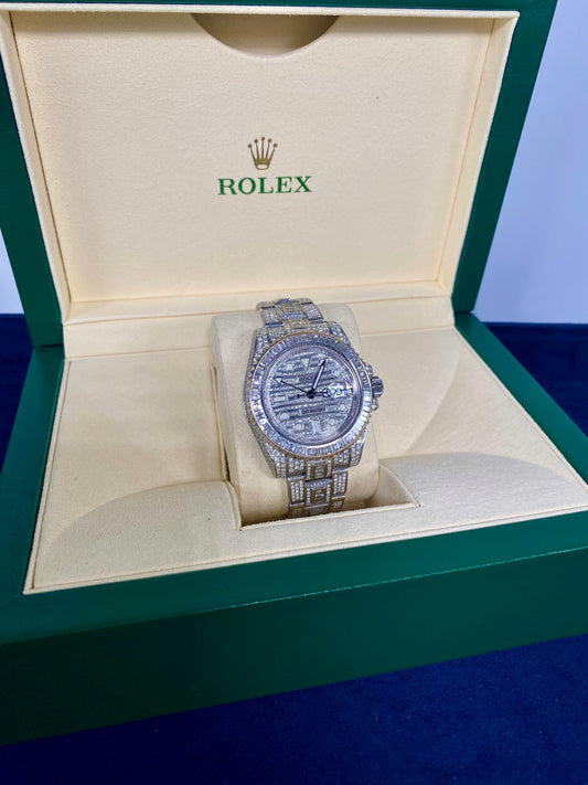 14k 12.4mm Two Tone Baguette Diamond Cuban Chain 20”