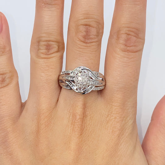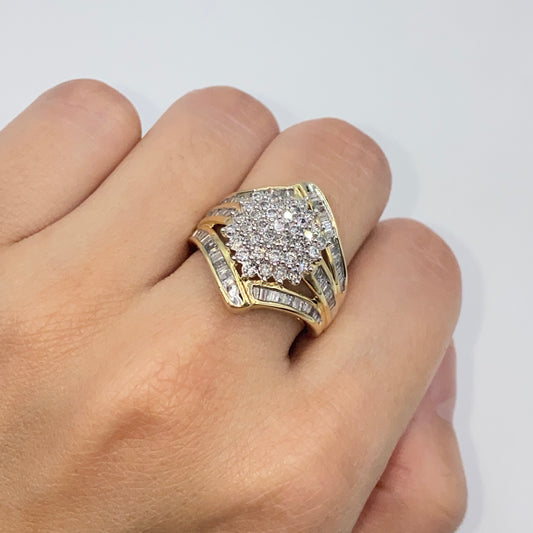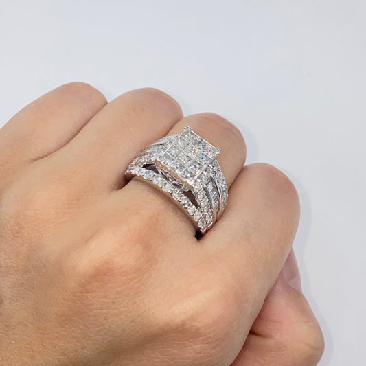10K Rectangle Princess Cut Diamond Baguette Ring