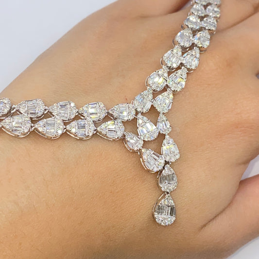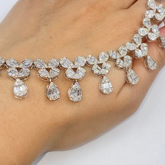 14K Heart Pear Link Diamond Tennis Chain Necklace