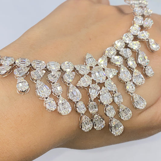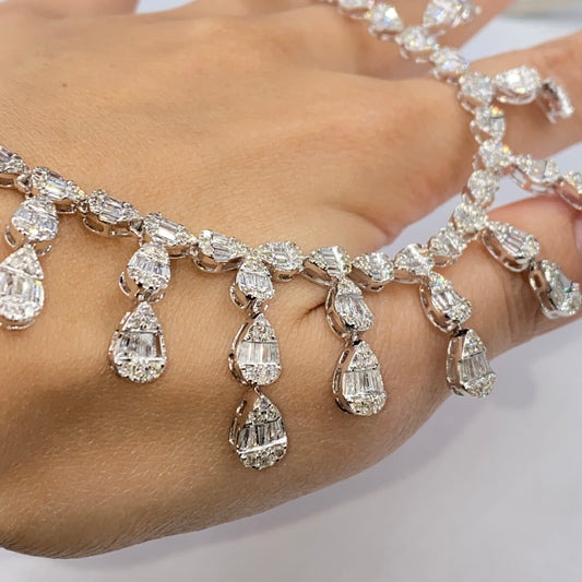 14K Stacked Pear Link Diamond Tennis Chain Necklace