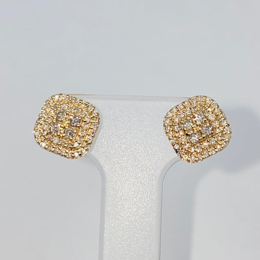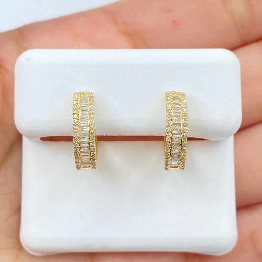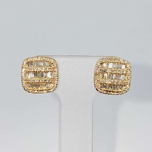 14K 8.7MM Rounded Square Baguette Diamond Earrings
