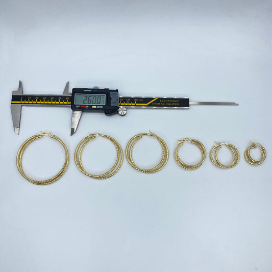 14K Alligator Textured Gold Hoop Earrings 3.5MM