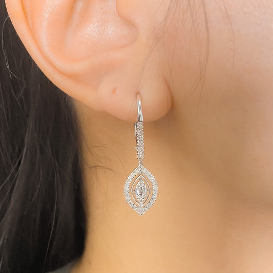 14K Navette Diamond Dangling Earrings
