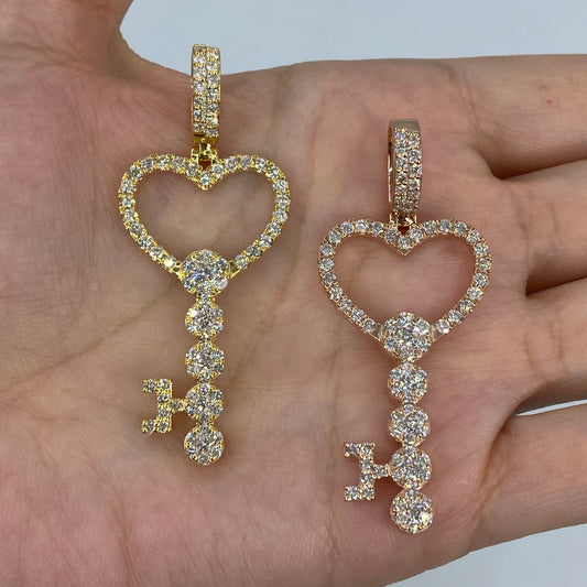 14K Heart Key Diamond Pendant