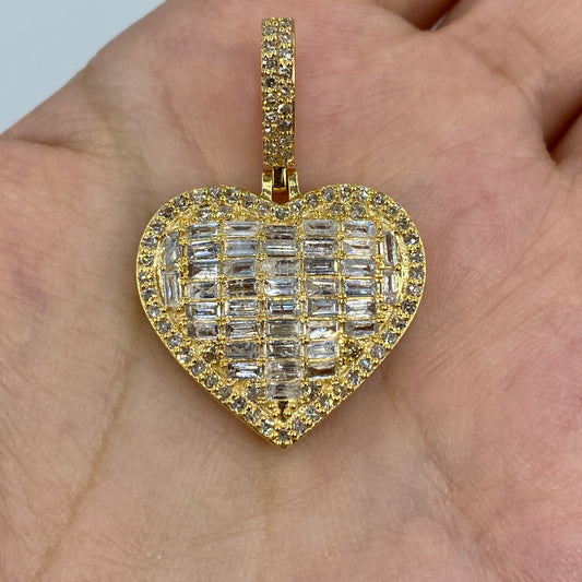 14K Jumbo Heart Halo Diamond Baguette Pendant