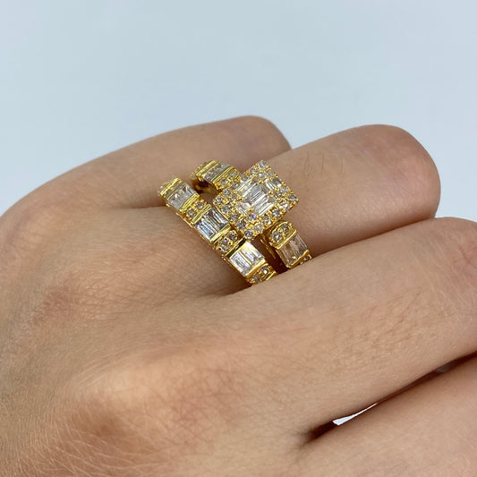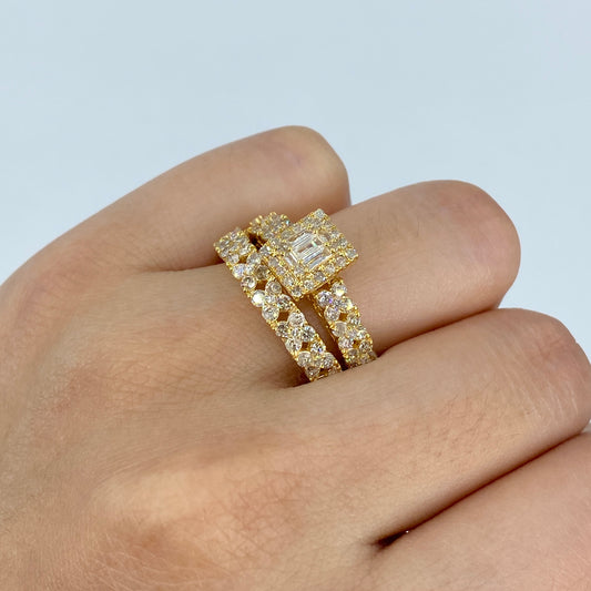 14K Square Diamond Baguette Engagement Ring with Stack Band
