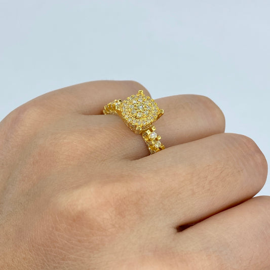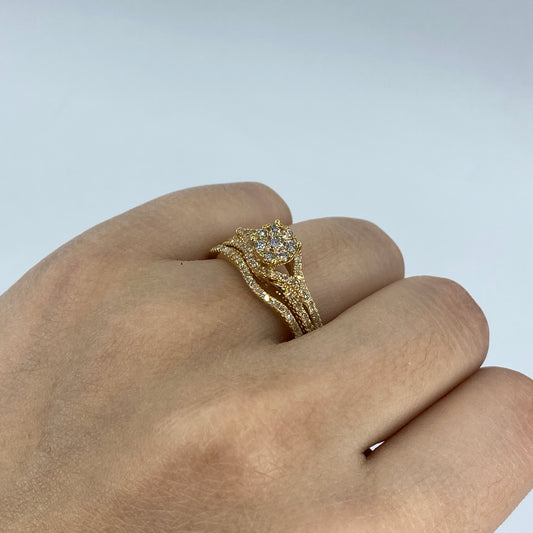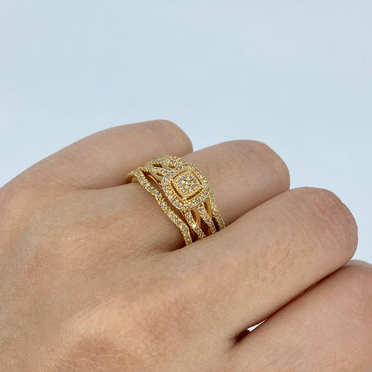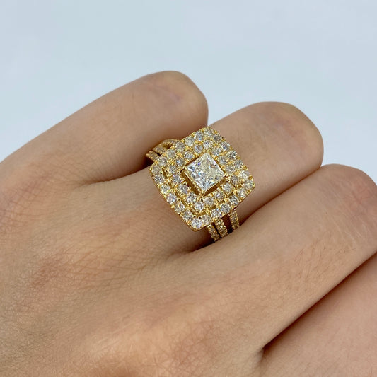 14K Romance Square Diamond Engagement Ring with Stack Bands