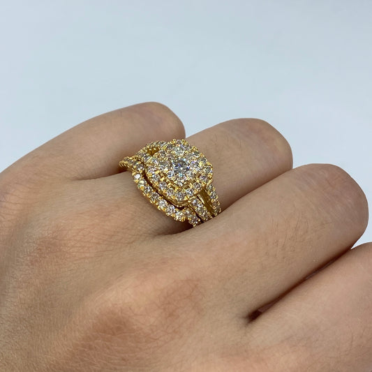 14K Square Halo Diamond Engagement Ring with Stack Band