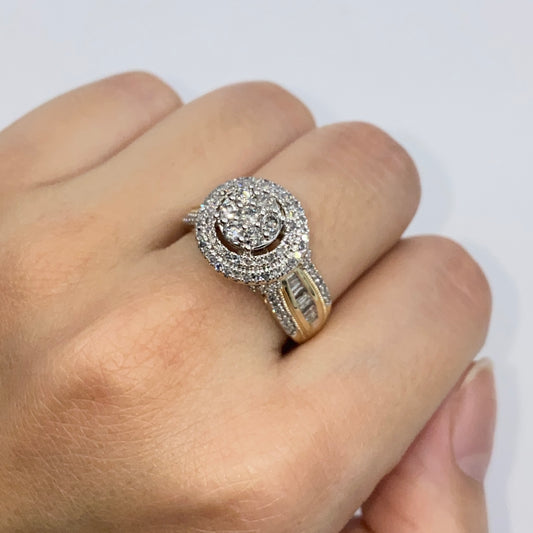 10K Circle Large Stones Center Diamond Baguette Engagement Ring