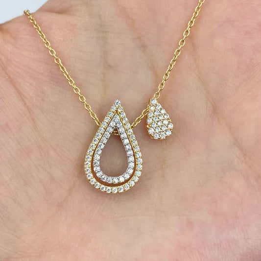 14K 3 Tier Drip Drop Tear Pendant Necklace