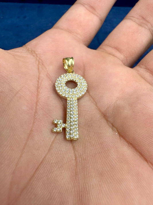 10K Gold White Sapphire Stone Key Pendant