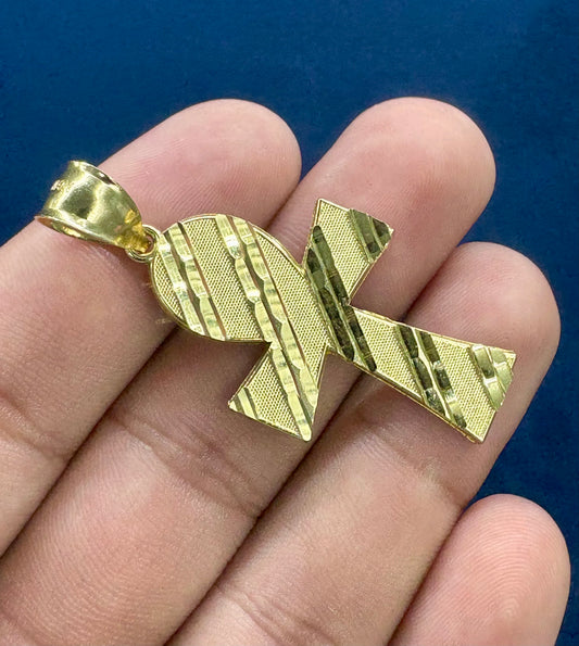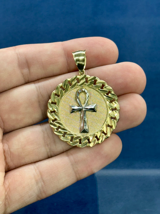 10k cuben style ankh circle pendant