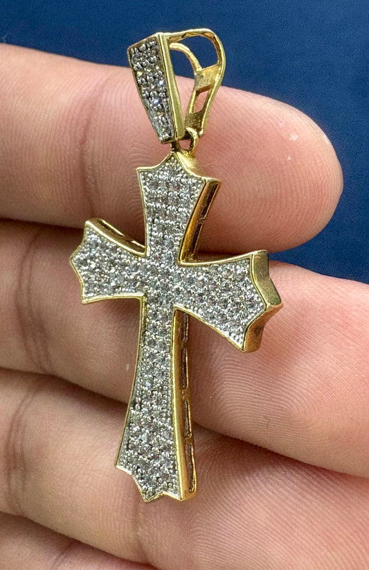 10k cross pendant with parallel lines