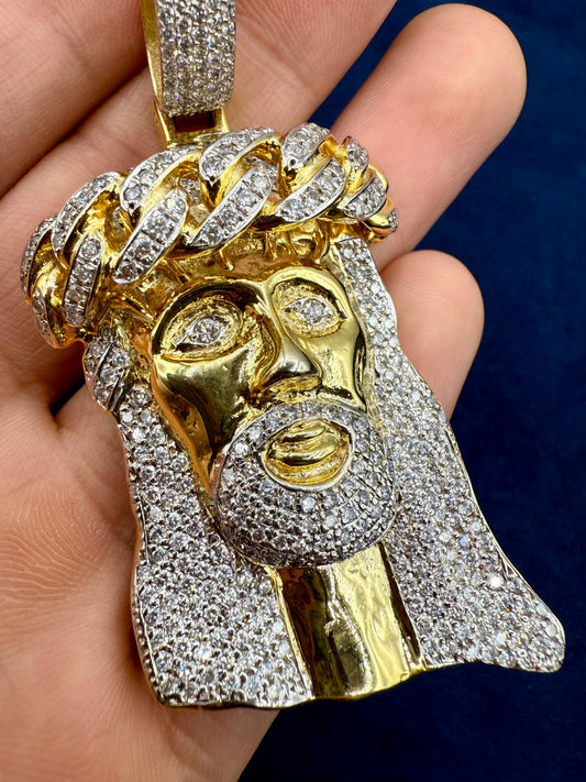 14k Custom Jumbo Cuban Link Jesus Head Pendant