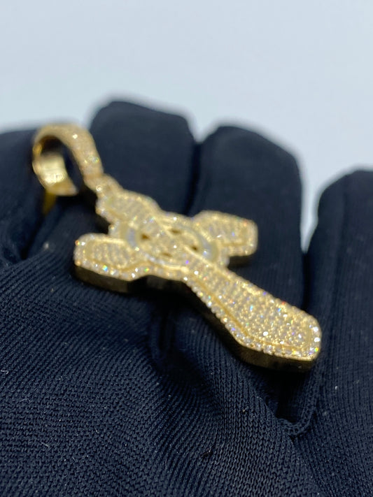 10K Celtic Cross Diamond Baguette Pendant 2.6ct