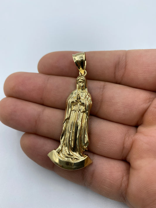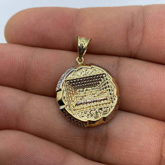 14K Saint Caridad del Cobre Round Medallion Pendant 1.25"