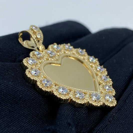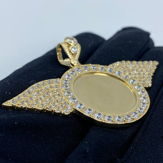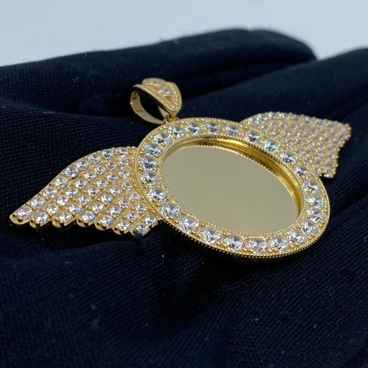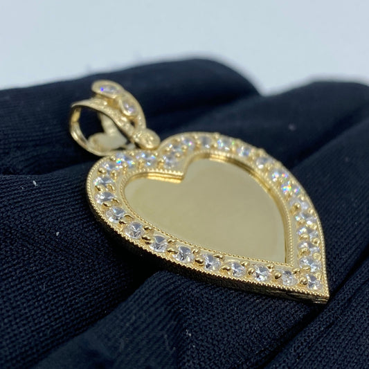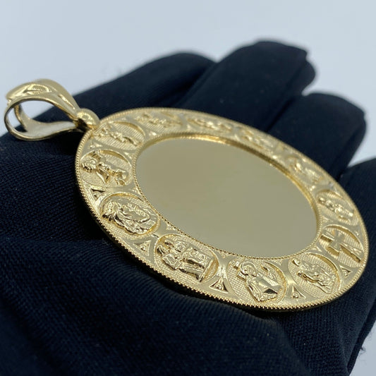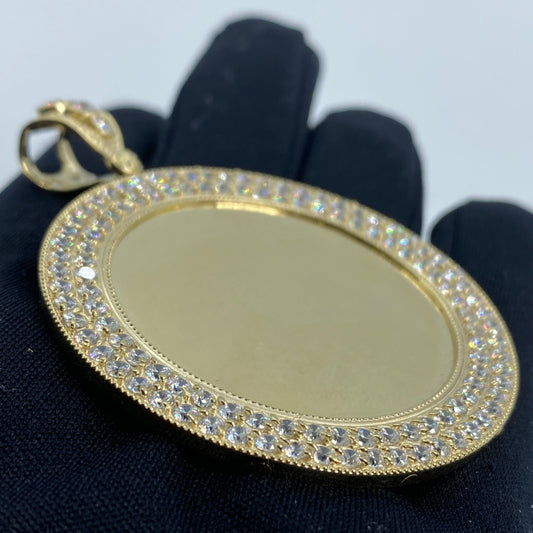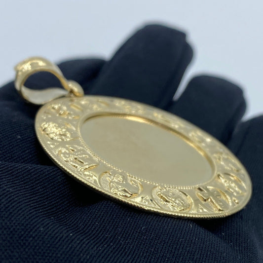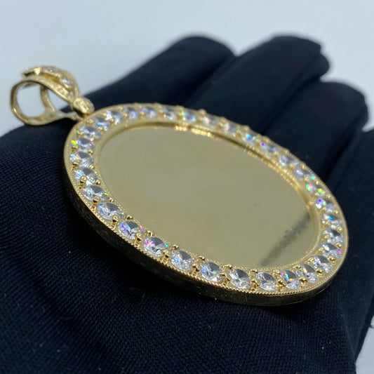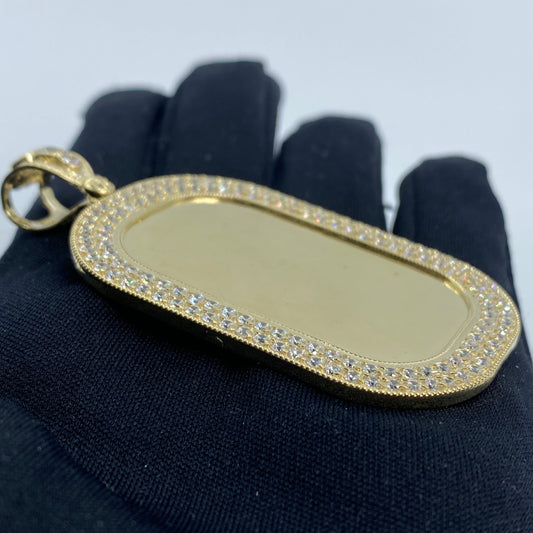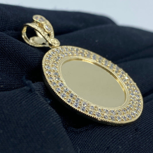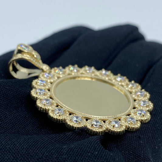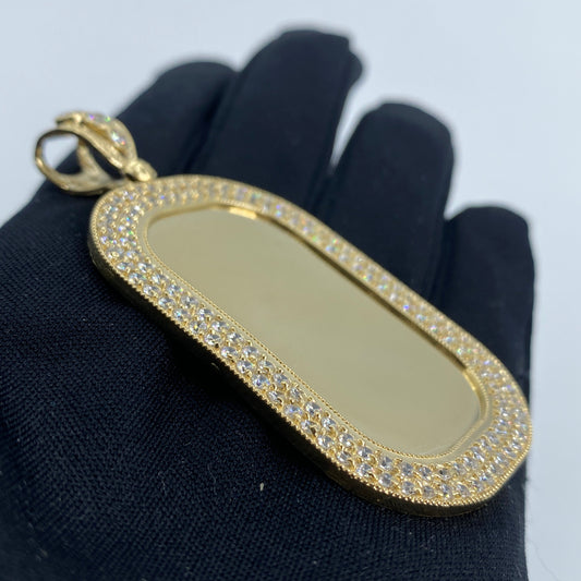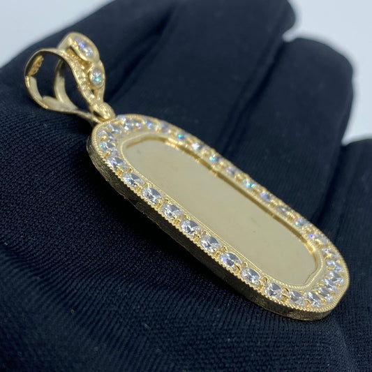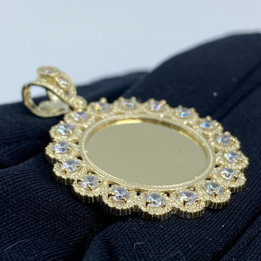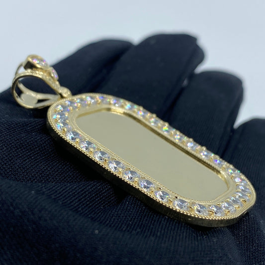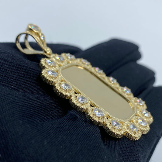 14K Rounded Rectangle Flower Picture Photo Pendant