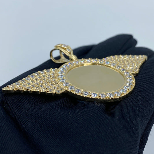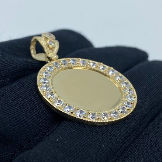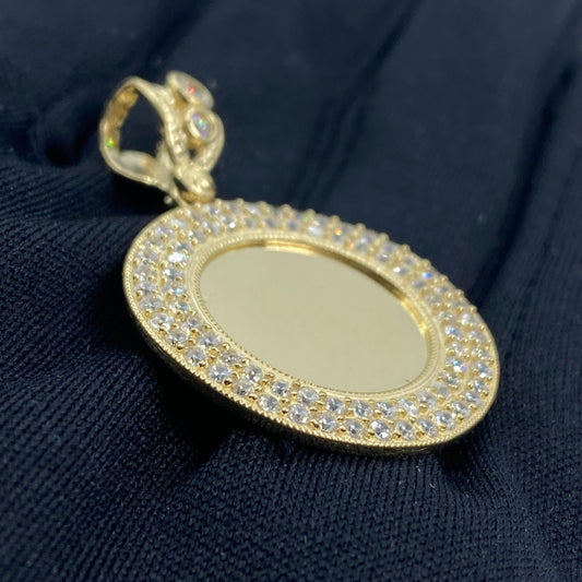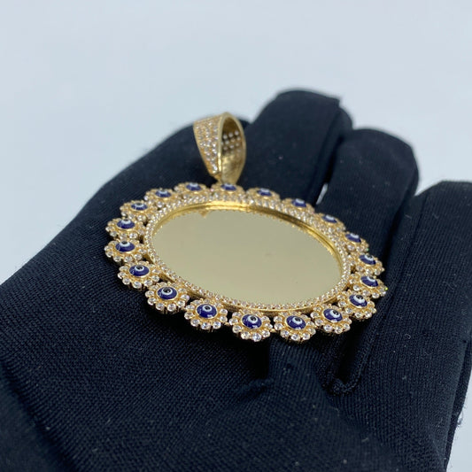 14K Evil Eyes Flower Circle Picture Photo Pendant