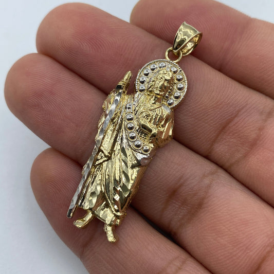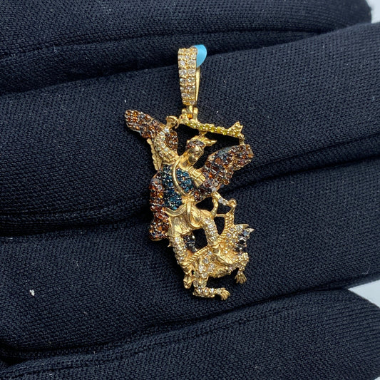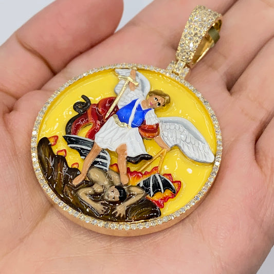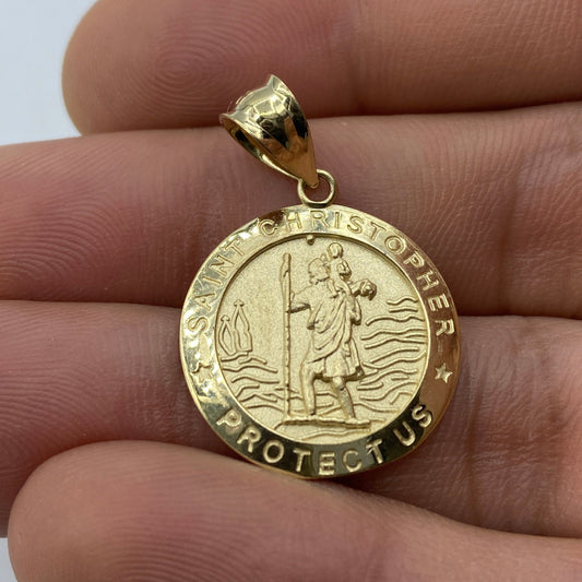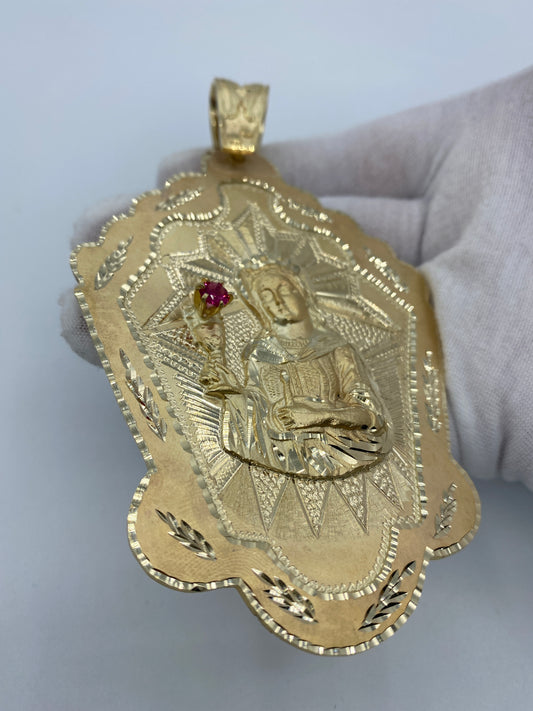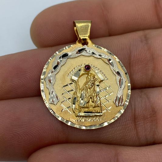 14K Saint Caridad del Cobre Round Medallion Pendant 1.25"