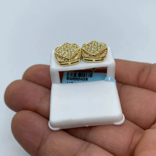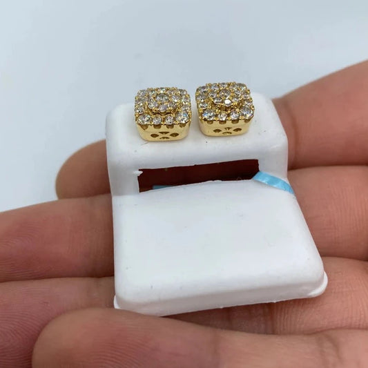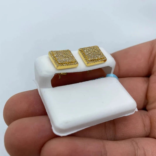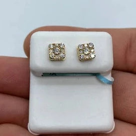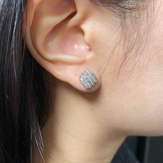 14K Square Flat Diamond Earrings