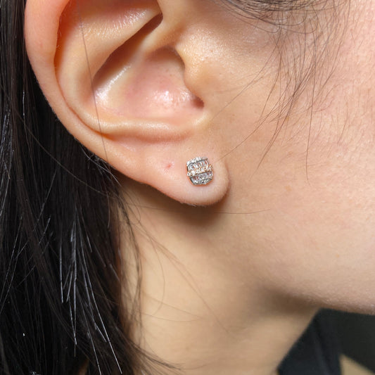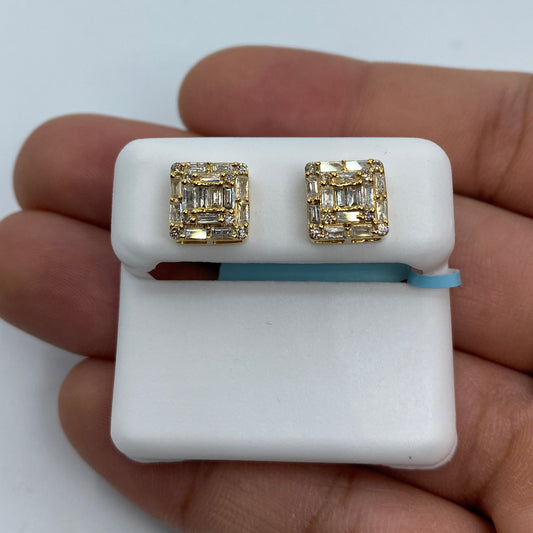 14K Square Crown Diamond Baguette Stud Earrings