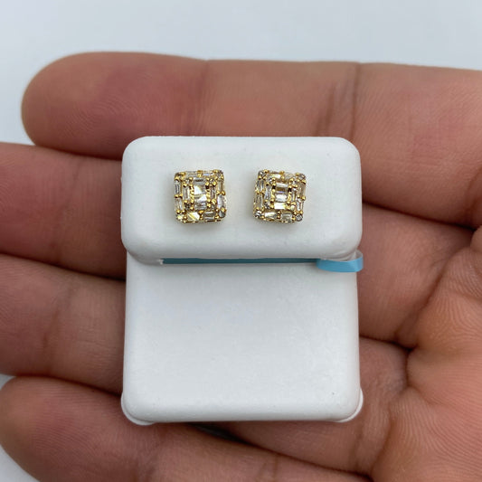 14K Big Rocks Square Diamond Earrings