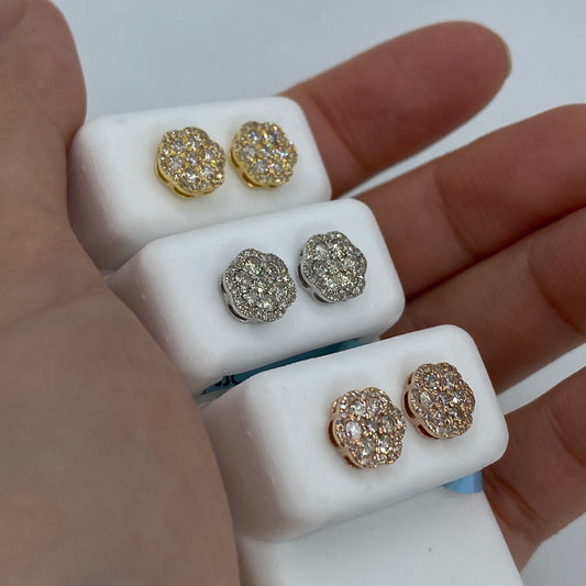 14K Hexagon Flower Diamond Earrings