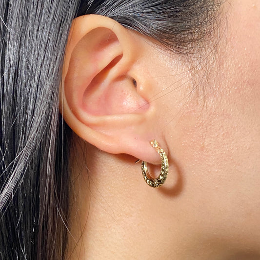 14K Alligator Textured Gold Hoop Earrings 3.5MM