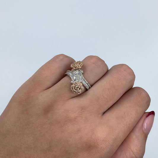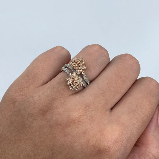14K Two-Tone Flower Diamond Ring