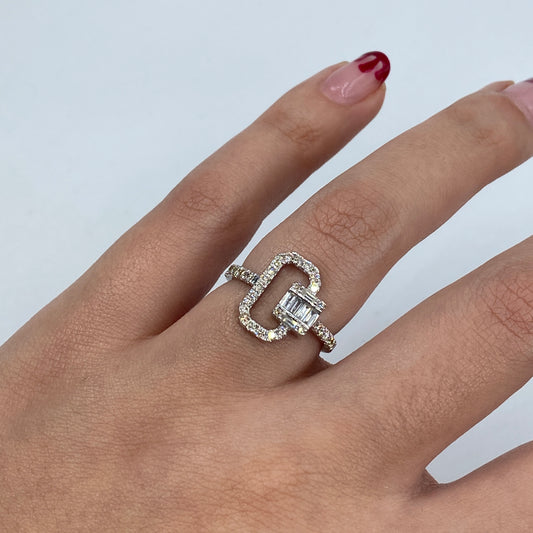 14K Dome Diamond Baguette Ring