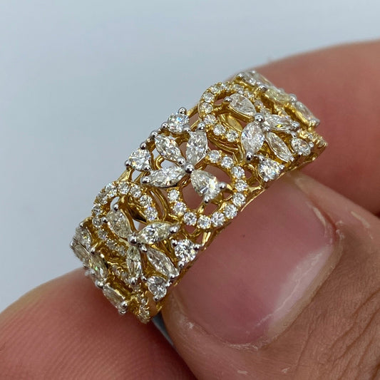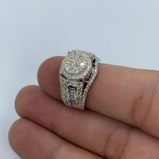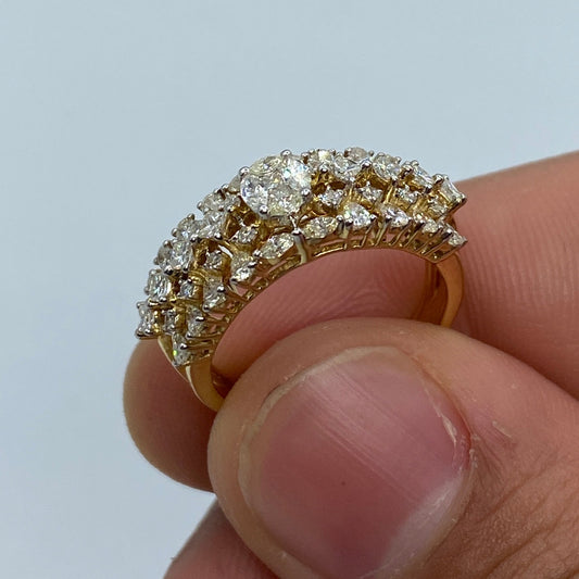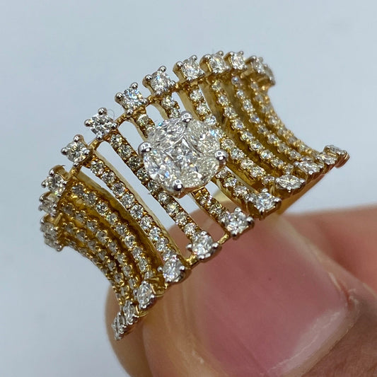14K Rectangle Center Diamond Baguette Ring in Yellow