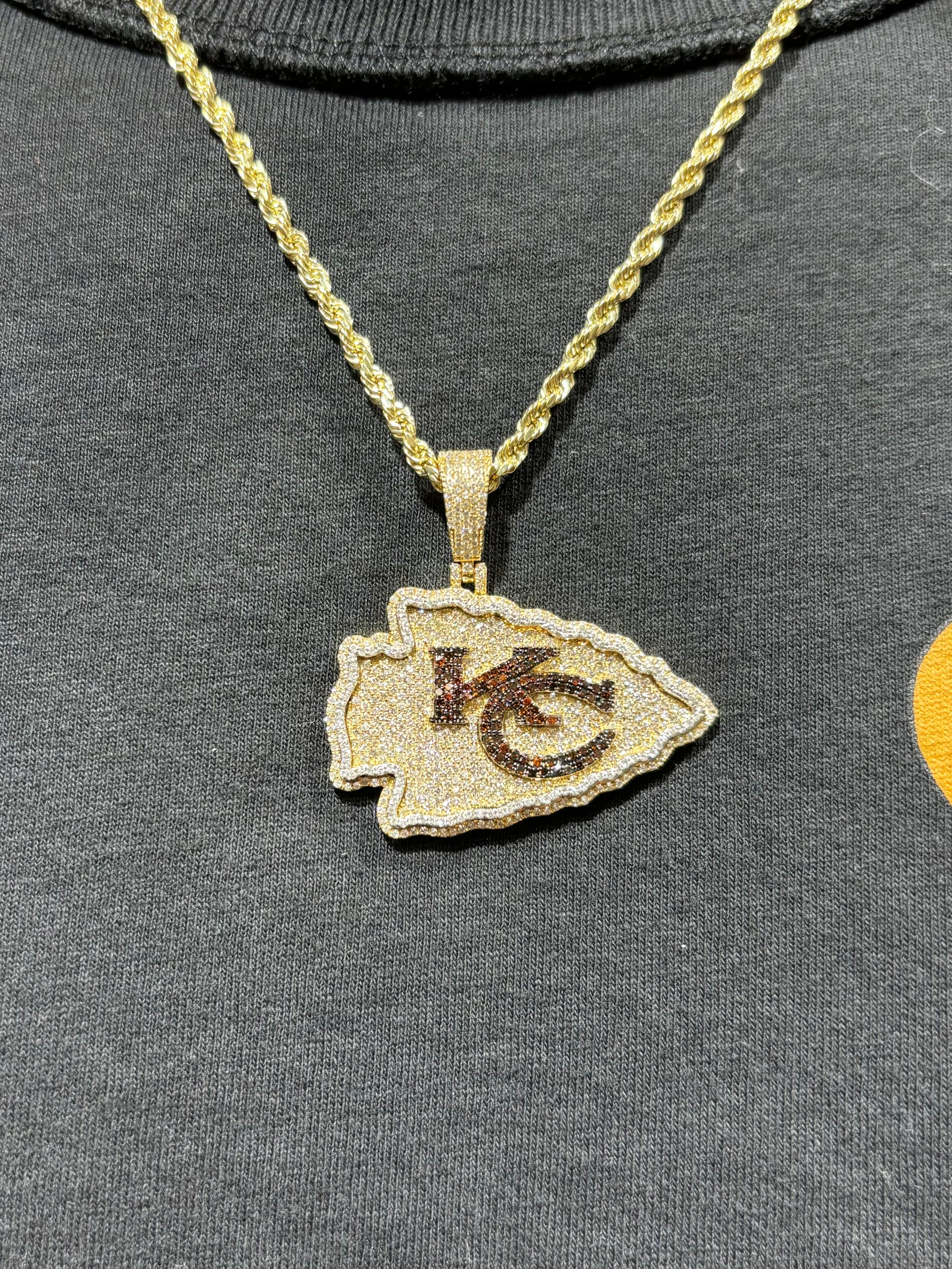 Elevate your game with our 10K Kansas City Chief Custom Pendant. Crafted with 10k gold and natural diamonds, this piece represents the spirit of Kansas City and its beloved team. Show your love for the Chiefs with this striking yellow gold pendant, perfect for any fan.