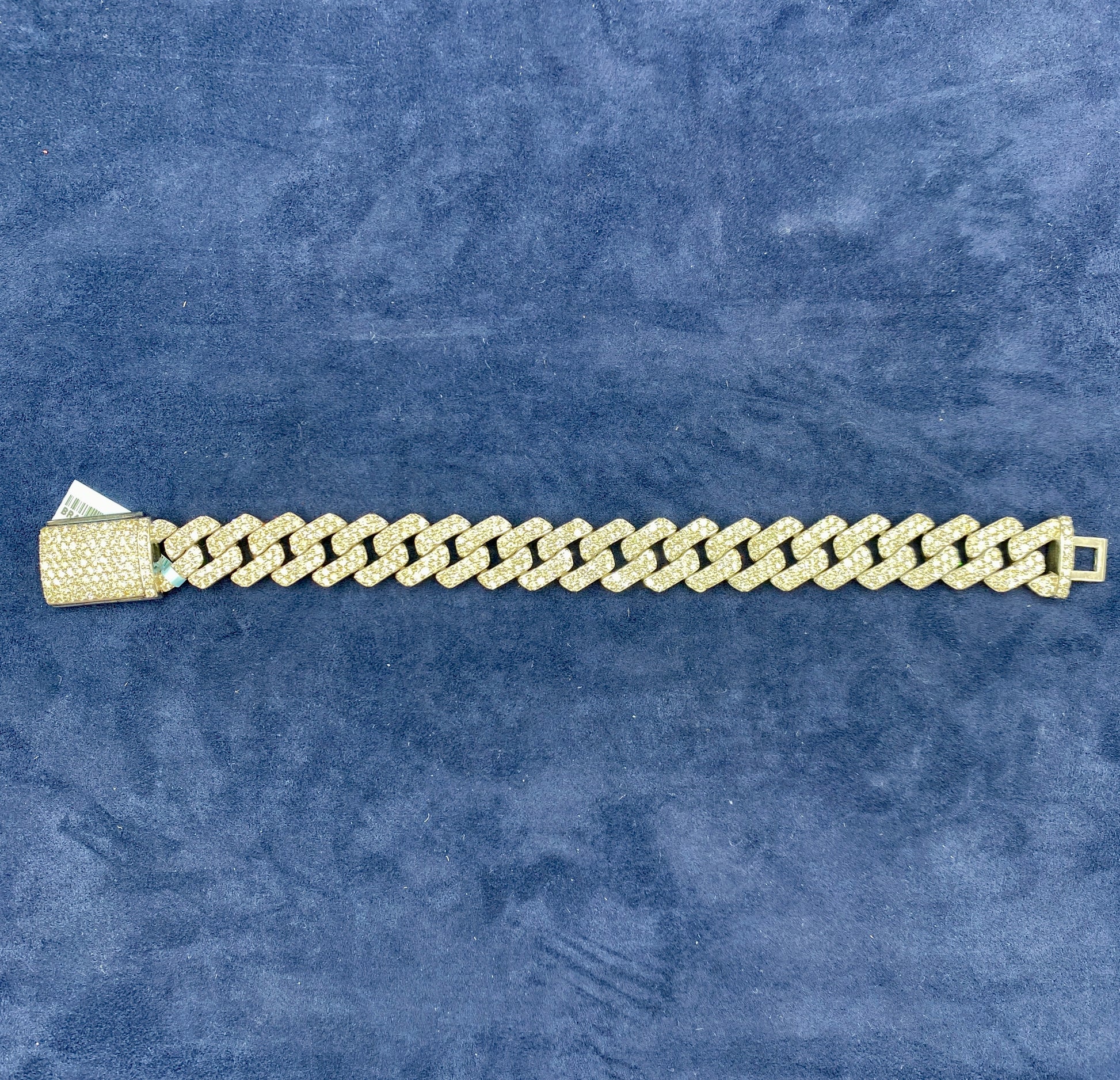 14K gold & diamonds Cuban link bracelet 15.5mm