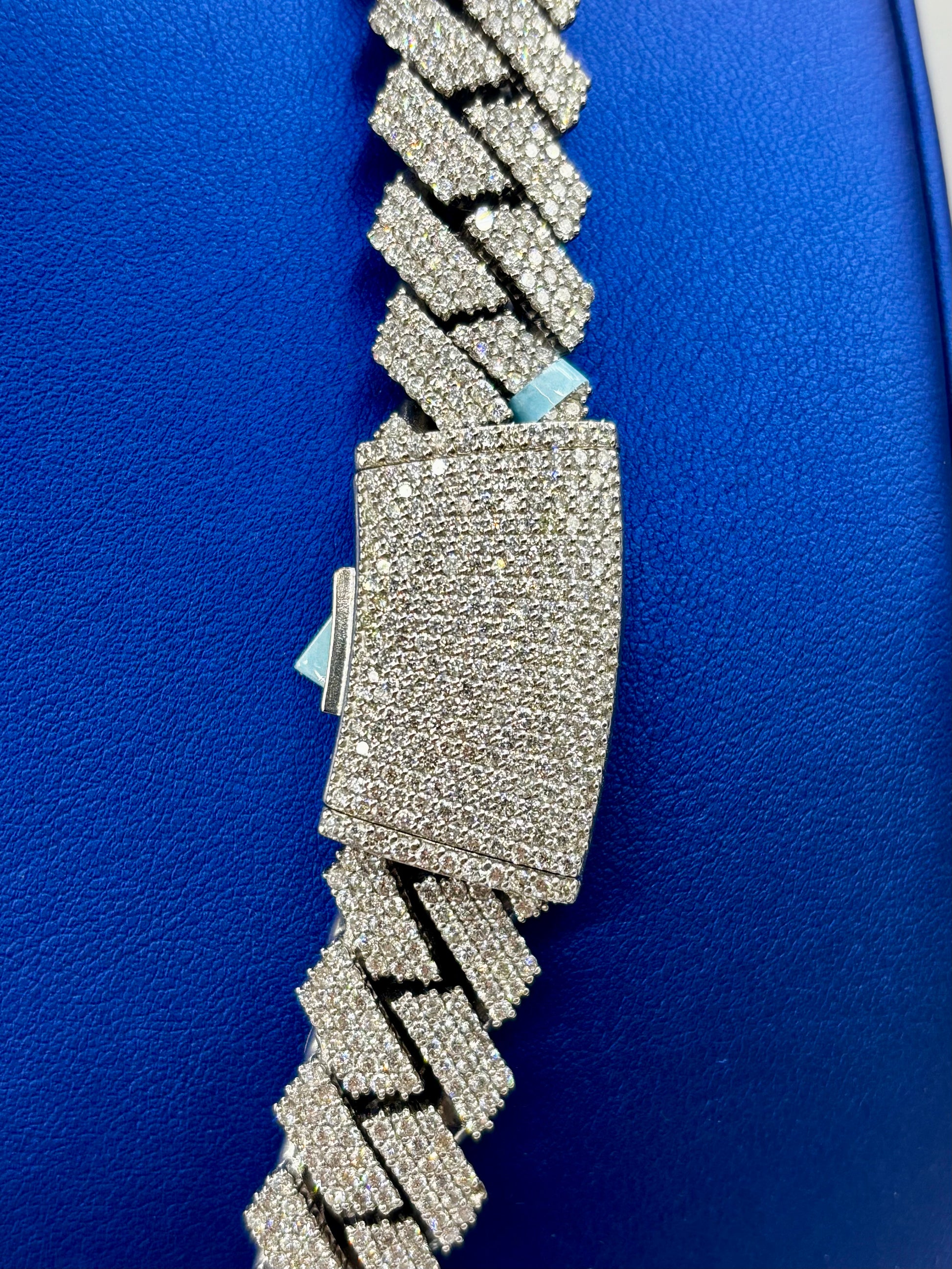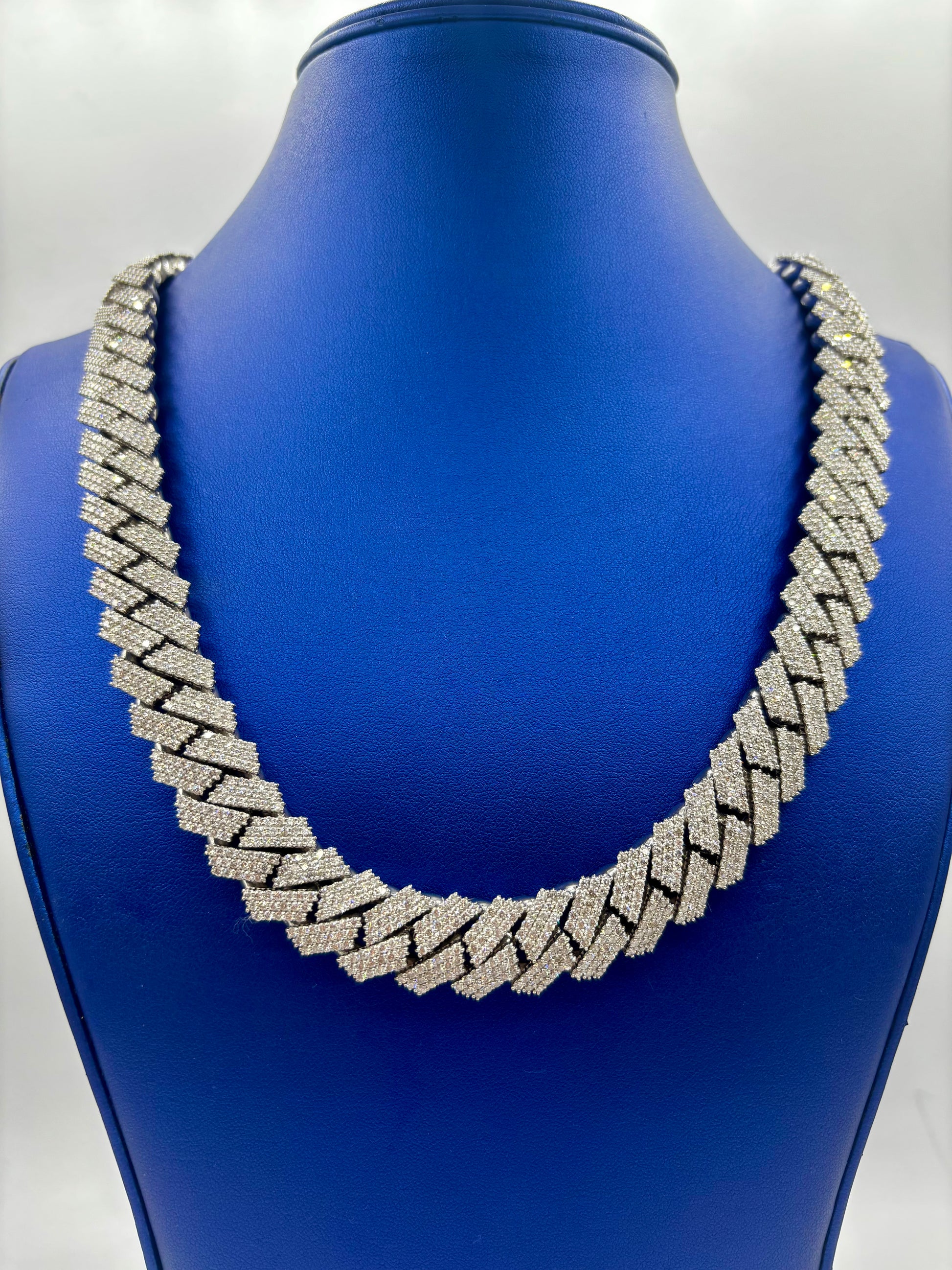 14k 16.5mm Jumbo White Gold and Diamond Cuban Link Chain
